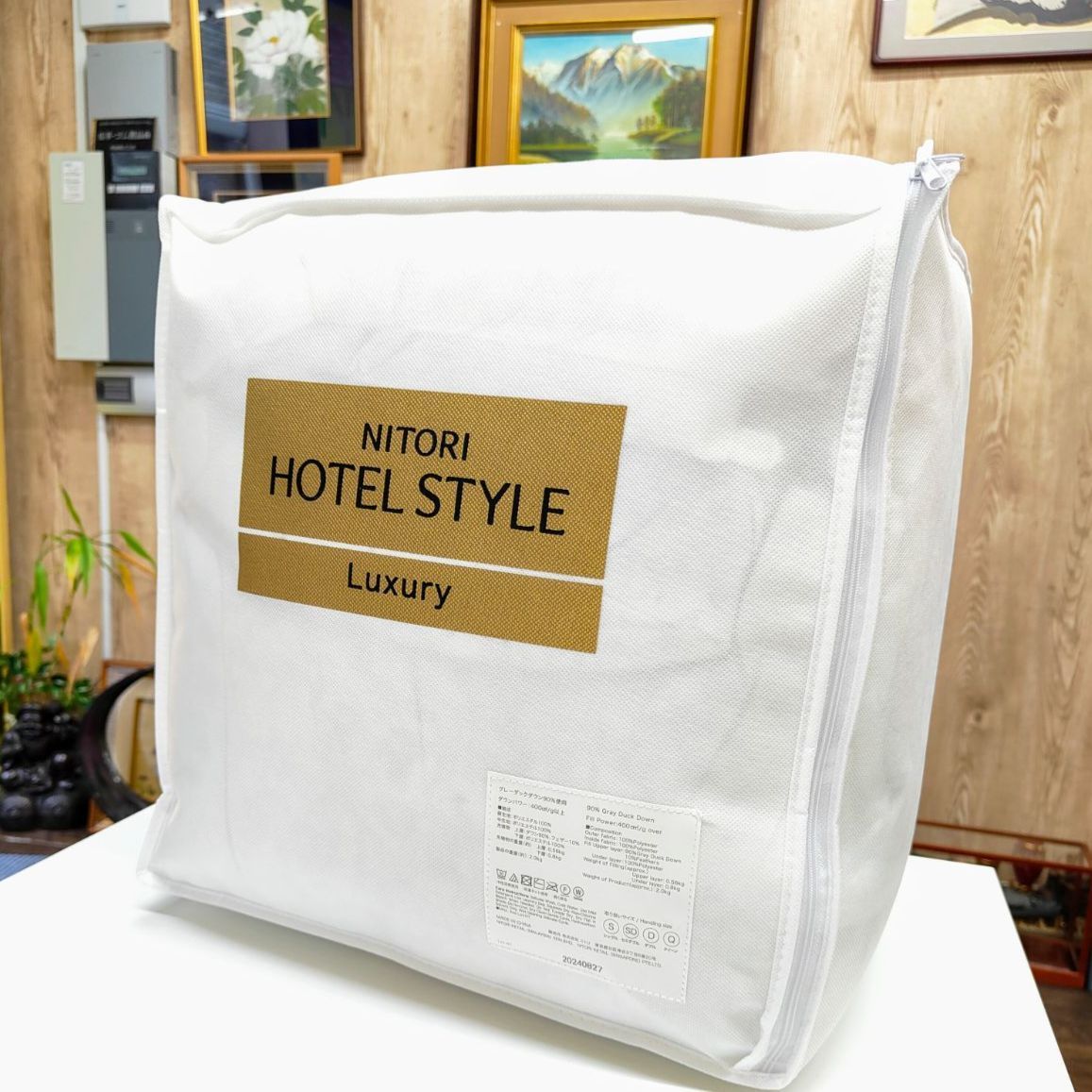 | 商品の特徴 | 新品 完全未開封】ニトリ ホテルスタイル 掛ふとん Nホテル。肌布団 シングル(Nホテル S WH S2522) | ニトリネット【公式】 家具。。ご覧いただきありがとうございます。掛け布団 綿布団 シングル 冬用。プロフィールを必ずご一読願います(*´﹀`*)今年 2025年10月末に購入したばかりです親戚が泊まりに来る予定で購入したのですが使用機会が無くなった為出品いたしました使用予定だったので値札等は外し処分しました新しいカバーに入れ、来客準備をしていたのですが上記の通り親戚が泊まりにくることが中止になったので、一度取り付けたカバーをはずし、購入した時の不織布のような四角状の入れ物(9.11枚目の画像参照)に戻した状態です寝具としては使用しておらずカバーを一度つけて取り外しただけの新品同様のお品ですシングル(S)羽毛掛け布団2025年モデル約2万円で購入捨てる訳にもいかず、予備として保管しておくよりも少しでも購入額に近い額で新しいうちとなたか必要な方にお譲りできたらと思っております確かに新品同様なのですが数日とはいえ自宅保管をしておりますので神経質な方、完璧なものをお求めの方ご購入はご遠慮ください中古品としてご理解いただける方のみご購入お願い致します発送方法は匿名取引の佐川急便/日本郵便で発送予定です置き配専用のエコメルカリ便での配送でも了承いただける方はエコメルカリ便にて発送させていただきます他にもジャンル問わずいろいろなものを出品しています(´>∀<`)ゝお時間ありましたら、是非1度出品一覧のぞいてみてください( *´﹀`* )#まめまるしぇ | ||