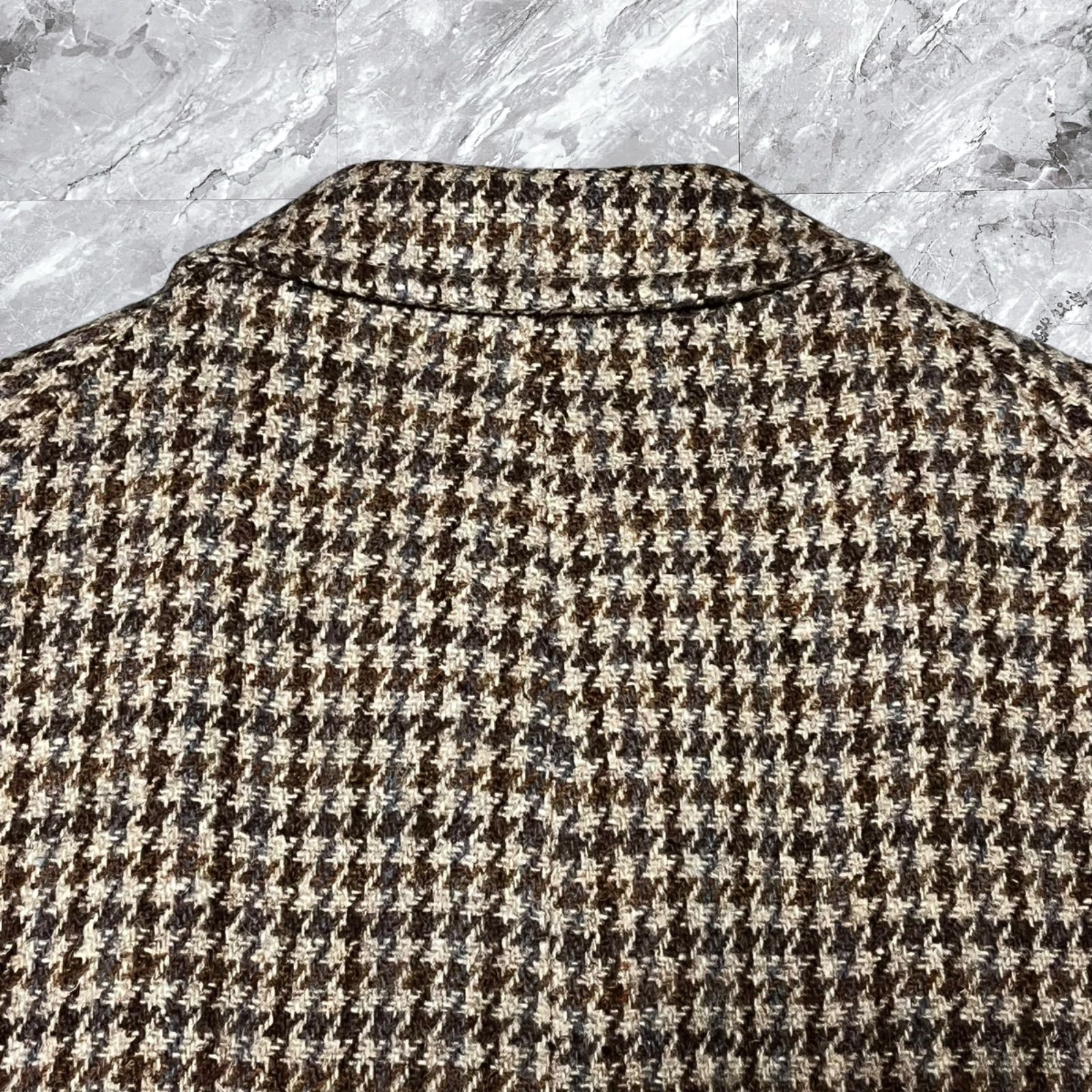 - メンズ > ジャケット・アウター > Harris Tweed ステンカラーコート ハウンドトゥース L 千鳥格子 Harris Tweed ハリスツイード ステンカラーコート ロングコート 千鳥格