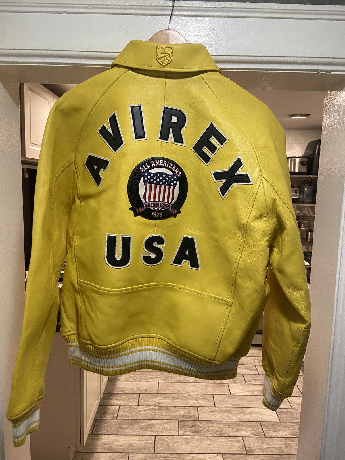 - メンズ > ジャケット・アウター > 3XL AVIREX tiger jacket 黄色 袖 レザー スタジャン XL STABRIDGE AVIREX varsity jacket