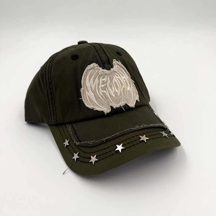 ec melodi スタッズ キャップ cap Studded EC Melodi Star Studded Hat (Olive) Mens Hats at Emage Colorado, LLC