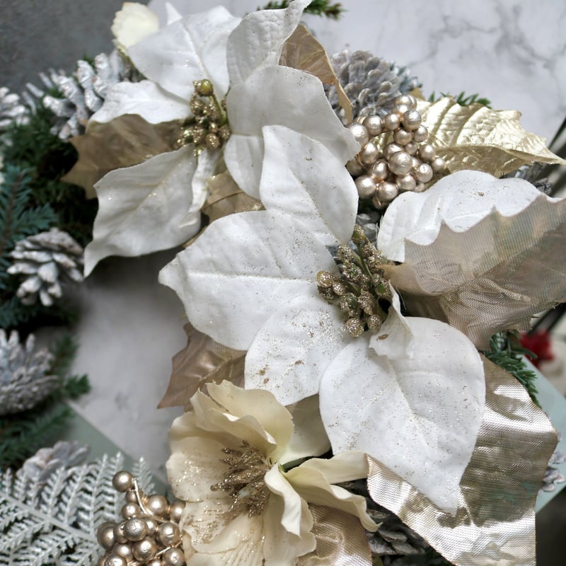 | メーカー | 商品名【梓】ゆきこ♥オフホワイトローズの秋冬フラワーリース✳ 玄関リース |