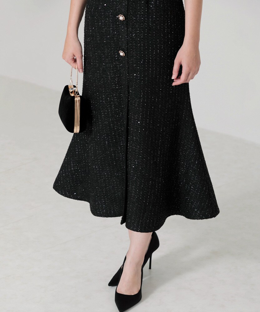 ⭐︎みいさま専用)未使用)Leja/ラメ混ツイードパール釦スパンコール刺繍ドレス LEJA】ラメ混ツイードパール釦スパンコール刺繍ドレス | レジャ(Leja