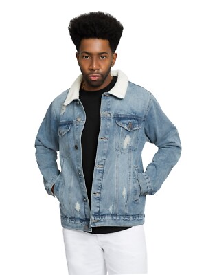 - メンズ > ジャケット・アウター > ジャケット・アウター JIN Victorious Men's Casual Distressed Sherpa Lined Collar Denim