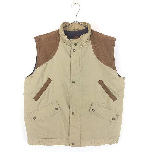 - メンズ > ジャケット・アウター > 【希少】80s エディーバウアー グースダウンベスト ナイロン ベージュ L 古着 80s USA製 Eddie Bauer 本革 レザー ガンパッチ コットン