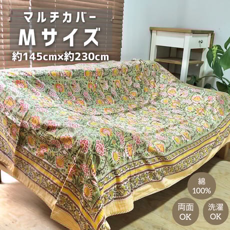 - 寝具 > 布団・毛布 > 未使用※大判 インド ブロックプリント 中綿入りキルト ブルーハワイ マルチカバ CATEGORY マルチカバー | MICALA ミカラ ブロックプリント生地・インド
