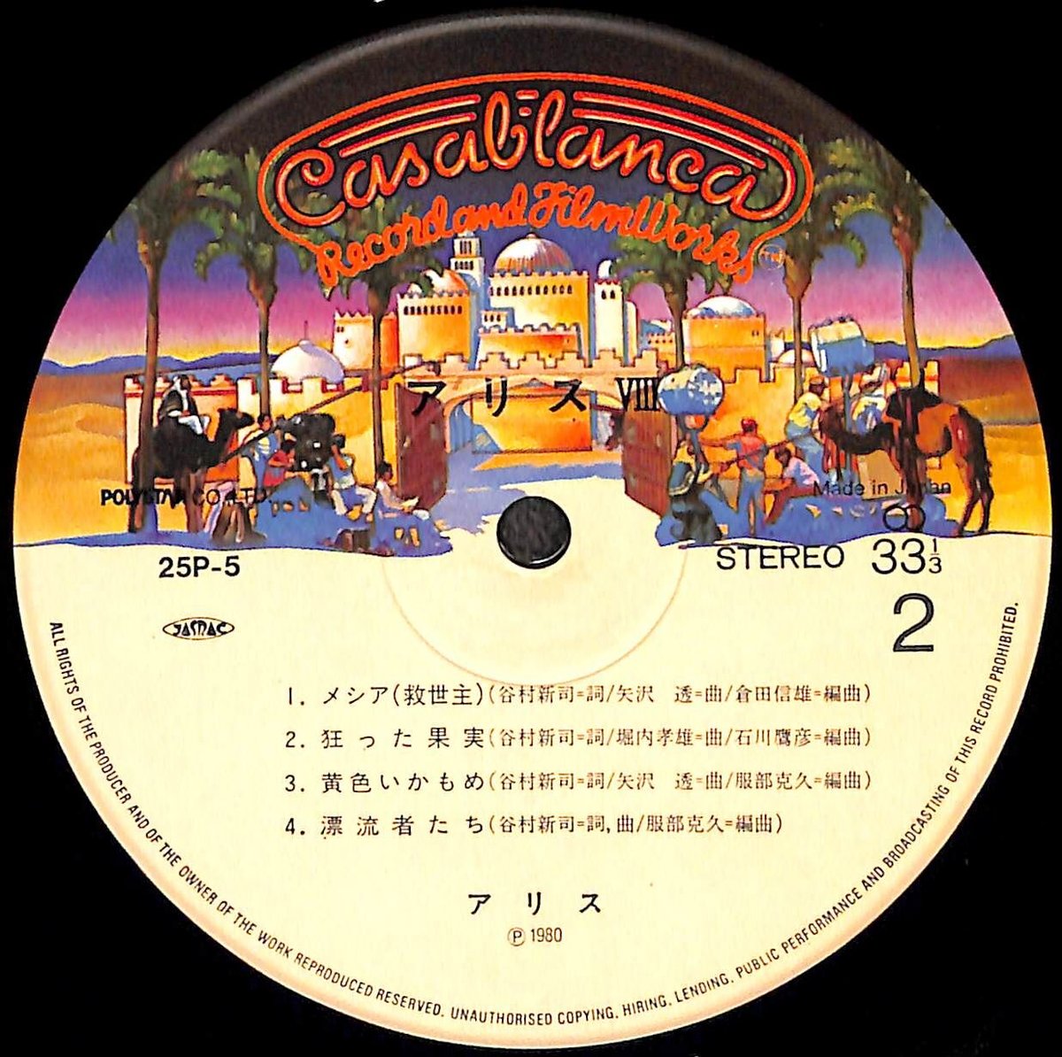 | 商品の特徴 | アリス / ALICE Ⅷ [※国内盤,品番:25P-5](LPレコード) | Books C。backend=imagemagick;version=1;。アリス / ALICE Ⅷ [※国内盤,品番:25P-5](LPレコード) | Books C。この年代の商品としては良好な状態ですが、あくまでも中古品ですので神経質な方はご遠慮下さい。外袋及び内袋は新品に差し替えて有ります。① シンディ・ローパー 全体的に美品です。② ゴーゴーズ 全体的に美品です。③ ザ・Bー52’S 全体的に美品です。④ フットルース 全体的に美品ですが 歌詞カード欠損。⑤ マドンナ 全体的に美品です。⑥ マイケル・ジャクソン ピクチャー盤 全体的に美品です。⑦ クイーン 輸入盤でジャケットに経年の 劣化がありますが、盤自体は 良好な状態です。⑧ シカゴ 全体的に美品です。⑨ トト アイソレーション 全体的に美品です。⑩ フィル・コリンズ 全体的に美品です。⑪ ワム! ジャケットにシミがありますが 盤自体は良好な状態です。⑫ カーズ レンタル落ち商品で盤に若干 反りがありますが、視聴に 問題ありません。全体的に 綺麗な状態です。⑬ ガール 全体的に美品です。⑭ ロッド・スチュワート 全体的に美品です。⑮ トト ターン・バック ジャケットに若干シミがありま すが盤自体は良好な状態です。⑯ ビッグ・カントリー 全体的に美品です。申し訳ありませんがバラ売りはできません。。ジャズ名盤セレクション | 株式会社誠文堂新光社。【売り尽くしセール】ジャズレコード32枚セット 国内版。シューリヒト&パリ音楽院管弦楽団 ベートーヴェン:交響曲全集。【赤盤】The Beatles E.P collection。blond レコード DELUXE EDITION Frank Ocean。VULFPECK THE BEAUTIFUL GAME レコード LP。ケニーバレル 名盤 レコード ミッドナイトブルー USオリジナル盤。オープンリール 14個。★Ras Allah HEAVEN IS MY ROOF JA orig★。SOUL/R&B/NEW JACK SWING中心 12インチ約90枚。【The Police Box(From 1977 to 1987)】。Vulfpeck Clarity アナログレコード。【希少】Jet - Shine On 極希少7インチボックスレコード★送料無料。VULFPECK MR FINISH LINE レコード LP。Bobby Fuller Four I Fought The Law 7インチ。激レア・希少品 見本盤 ラモーンズ ロッカウェイビーチ。joey bada$$ 1999 限定版レコード badass 2LP。ザ•ビートルズ•コレクション 特別限定盤。(未使用美品)ビートルズEPコレクション。洋楽 JOEY BADA$$ (Pro Era) 1999 Colored Vinyl | ||