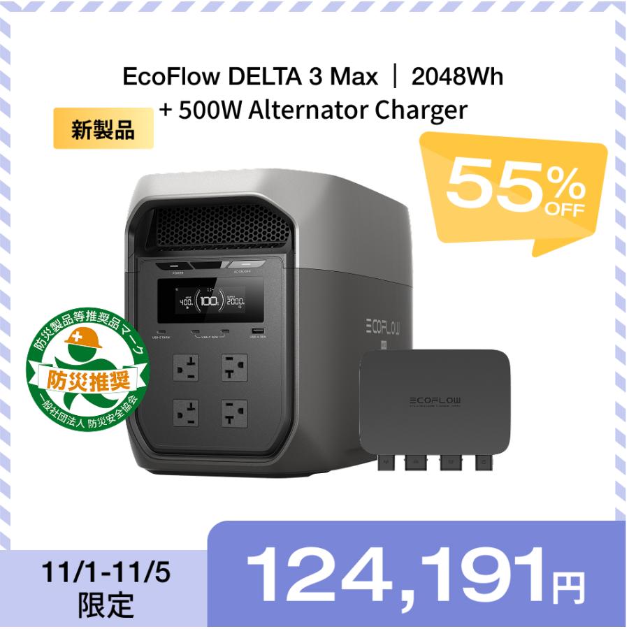 イ*チ様 【公式認定整備済品】EcoFlow Delta3plusポータブル電源 ECOFLOW ポータブル電源 大容量 DELTA 3 Max 2048Wh + 500W Alternator