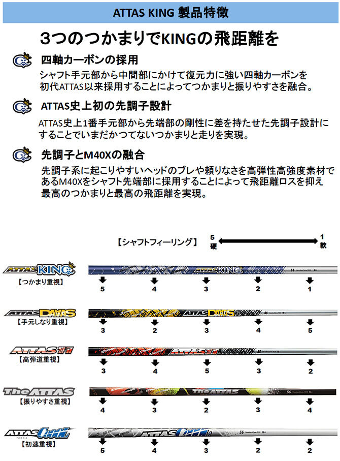 | メーカー | ドライバー用 テーラーメイド シャフト アッタスKING 60S |