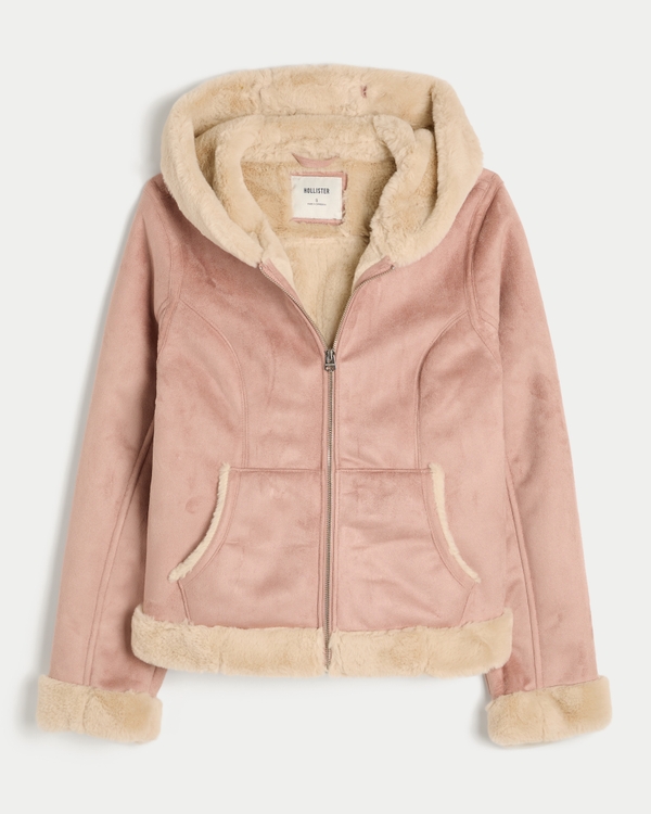 ピンク Hollister フェイクファーフード ボンバーコートy2k Women's Faux Fur-Lined Faux Shearling Hoodie Jacket | Women's