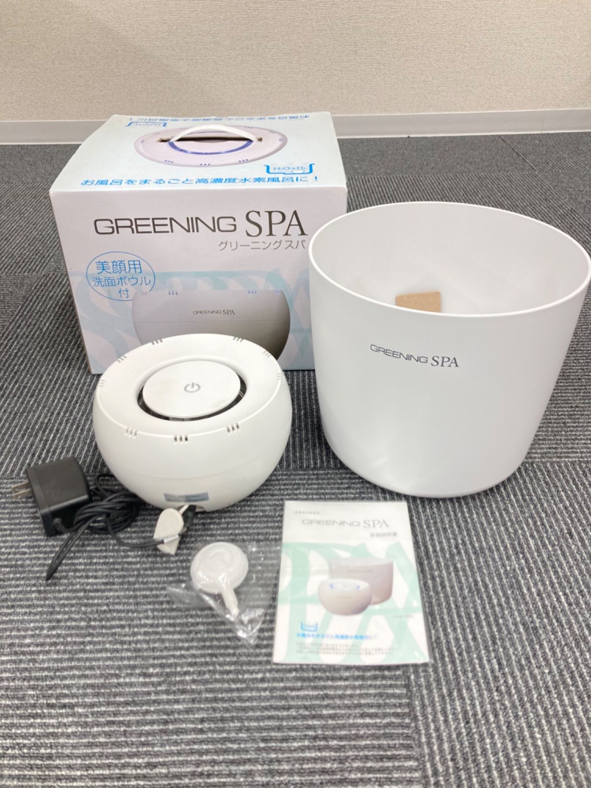 | 商品の特徴 | 高濃度水素風呂 グリーニングスパ 美顔用洗面ボウル付。未使用品 高濃度水素風呂 グリーニングスパ HDW0004 美顔用洗面ボウル付き。。●高濃度水素風呂 グリーニングスパ HDW0004 ●シナジートレーディング の浴槽用水素水生成器 ●電源をONにすると常時、1600~2000ppbの水素分子が発生、高濃度の水素風呂としてご利用頂けます。 スタートボタンを押し15分で自動停止する仕様で、無駄な電力消費を防ぐ事ができ、3時間のフル充電を行うと1回15分稼動で約10回の使用が可能です。 【商品の説明と仕様】▪耐熱温度:50℃以下 ▪電源:AC100-240V(50/60Hz) ▪充電時間(約):3時間 使用可能時間(約):1回15分稼働で10回 ▪消費電力(約):充電時20W ▪サイズ(約):幅19.4×奥行19.4×高さ12.0cm ▪質量(約):1450g ▪付属品:美顔用洗面ボウル、取扱説明書 電源ケーブルのみ不足しています。使用せず保管していたのですが出品しようと中身を確認したところ充電ケーブルだけ見当たりませんでした。。CRDH 1mlリキッド PHC CBP THXE CBD CRDH。MYTREX マイトレックス MEDI NECK EMS。最終値下げ ブリリアントウェーブ パッド付。未開封 レア品★Oly Life オリーライフ GALAXY G-ONE | ||
