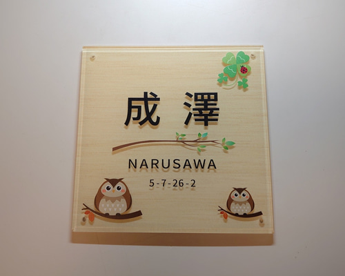 - インテリア小物 > ウェルカムボード > Herb*木目・モンステラ付アクリル表札*4辺45度斜めカット*UV印刷 Herb様専用*木目・モンステラ付アクリル表札*4辺45度斜めカット