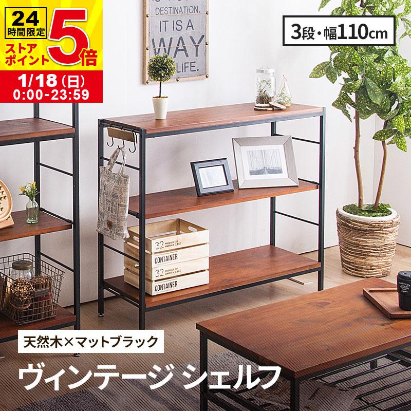 - 家具 > 棚・シェルフ・ラック > 【16日限定値下げ】シェルフ 収納棚 ヴィンテージ 無垢 天然無垢 カフェ本棚 MINT シェルフ 木製 3段 アンティーク調 幅110 ラフ ヴィンテージ調