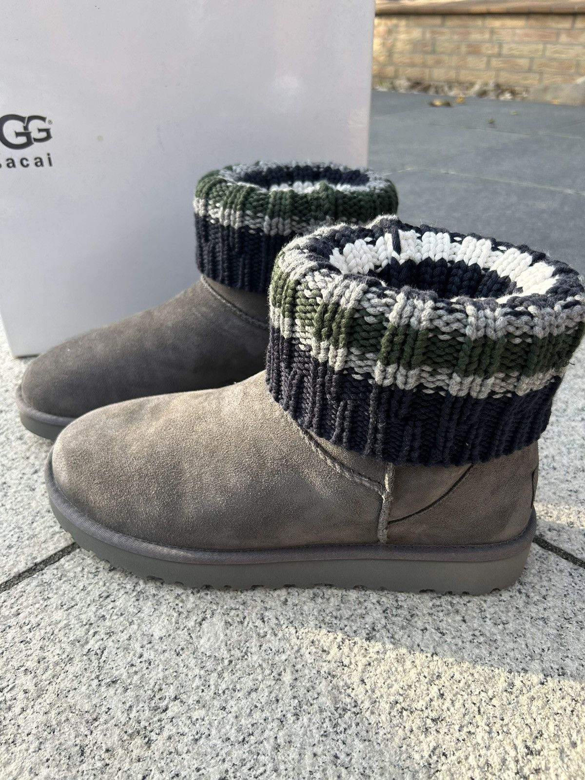 UGG W SACAI KNIT CLASSIC MINI II 7 ブラック Sacai × Ugg UGG x Sacai Classic Mini Boot | Grailed
