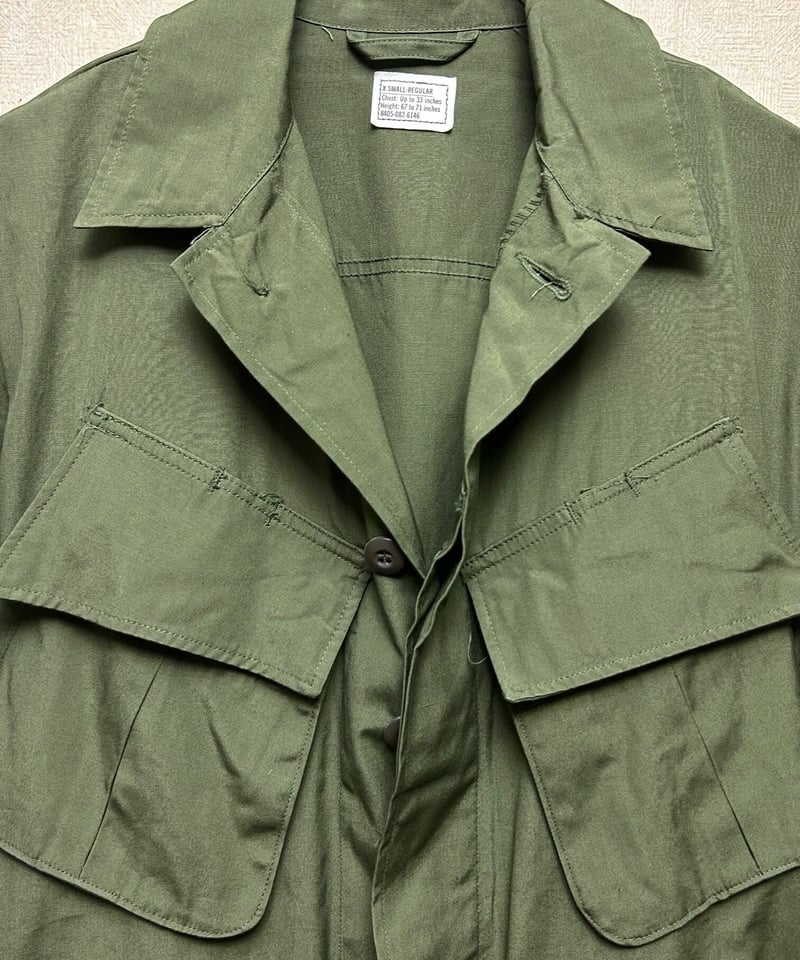 | 商品の特徴 | 米軍実物NAM戦期ノンリップジャングルファティーグデッドストック〉米。米軍実物NAM戦期ノンリップジャングルファティーグデッドストック〉米。実物 1960年代 アメリカ軍 3rd Model ジャングルファティーグ パンツ。60年代実物のU.S.ARMYジャングルファティーグジャケットです。コントラクターはTELLICO MFG.CO、ミルスペックはDSA100-69-C-1404。同モデルの中では3rdタイプとして位置づけられているこちらは1st、2ndに見られるエポーレットは省略されたモデルです。通常3rdモデルではポケットの底の水抜き用のドレンホールが省略されていますが、こちらは69年度の3rdの最終モデルの為、ドレンホールが復活しております。人気のノンリップ品です。デッドストック品を購入して、複数回着て何度か洗濯しました。キズやシミなどはなく、色もしっかり残っており、ワッペン跡もありません。サイズ表記SMALL-LONG※表記はロング丈ですが、購入時に信頼できるショップにてレギュラー丈相当にお直ししております。着丈詰めの際にポケットも上にずらしていますので、そこは縫い目の跡は若干残っております。ほぼ目立たないとは思いますが、写真をご確認ください。(7枚目、8枚目)お直しは着丈のみ5cm程詰めました。通勤にしか着ておりませんので、美品です。ノンリップ品がこのクオリティーは珍しいかと思います。肩幅:44cm身幅:55.5cm袖丈:64cm着丈:74cmミリタリー品は個体差が大きいため、実寸をご参考頂く方がいいかと思います。よろしくお願いします。素人採寸、検品のため多少の誤差はご了承下さい。。60s 1st US ARMY ノンリップ ジャングルファティーグ JKT サイズ。ASPESI M65 フィールドジャケット ライトアウター アスペジ。THE REAL McCOY’S SATEEN UTILITY SHIRTS。HUMAN MADE ミリタリージャケット A-2 ヒューマンメイド。しろまるアビレックス 6152145 N-3Bフライトジャケット。PARKA, EXTREME COLD WEATHER モッズコート us。わ*か様 08' US NAVY GORE-TEX PARKA M-R(ECWC。【美品】アスペジ サファリジャケット ミリタリー 製品染め ガーメントダイ 現行。ジャケット・アウター ASAT TRIBALCAMO RIPSTOP FATIEGUE JACKET。ジャケット・アウター UNCROWD A-2 JACKET 40。コリンボCOLIMBO M-65 ライナー付き ジャケット M65。ジャケット・アウター ego tripping navy parka。John UNDERCOVER プリント ファティーグジャケット ミリタリー。ECWCS GEN1ゴアテックスパーカー X-Small Regular。ECWCS/LEVEL7 PRIMALOFT PARKA/ミリタリージャケットS。N*0様 60's アメリカ軍 ジャングル ファティーグジャケット 3rd | ||