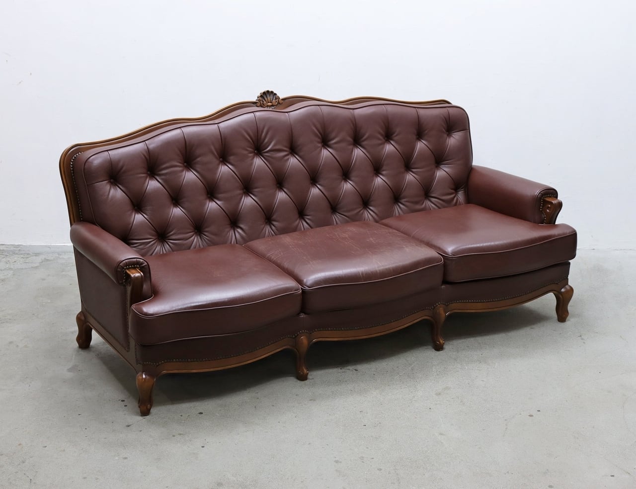 - ソファ・ソファベッド > 2人掛け・3人掛けソファ > ちょこれーと*カリモク 猫脚 3人 トリプルソファ アンティーク karimoku カリモク 本革 クラシカル 3Pソファ 猫脚 レザー