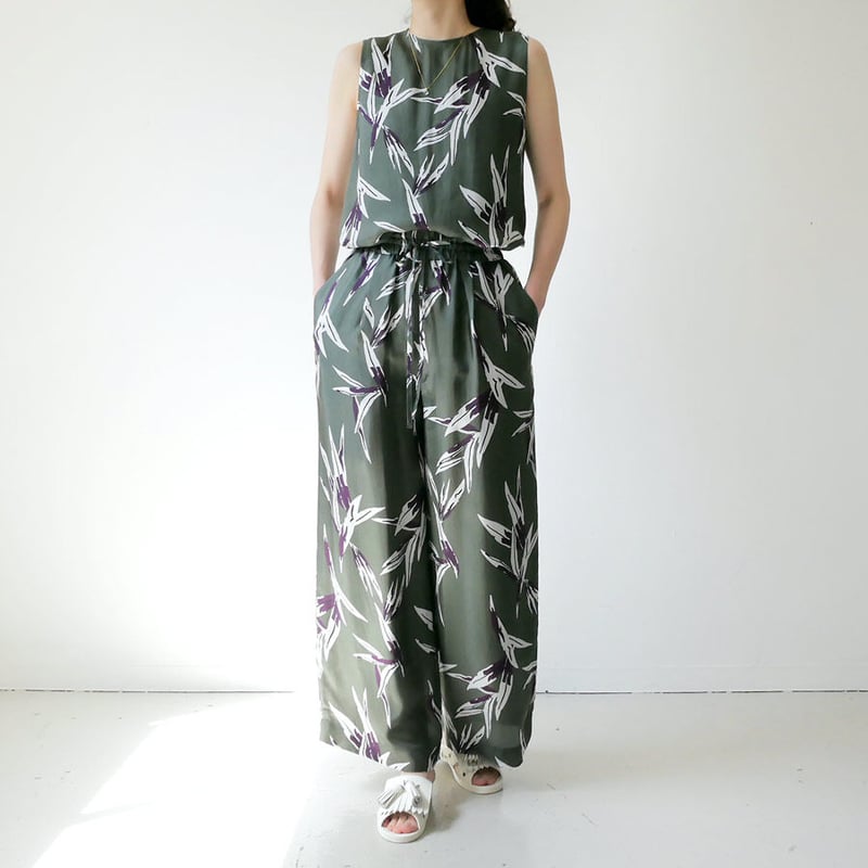 - レディース > パンツ > [新品タグ付き]SACRA リネン混 ワイドパンツ グリーン系 SACRA|サクラ |リーフプリント ワイドパンツ|122120113| ASH GREEN