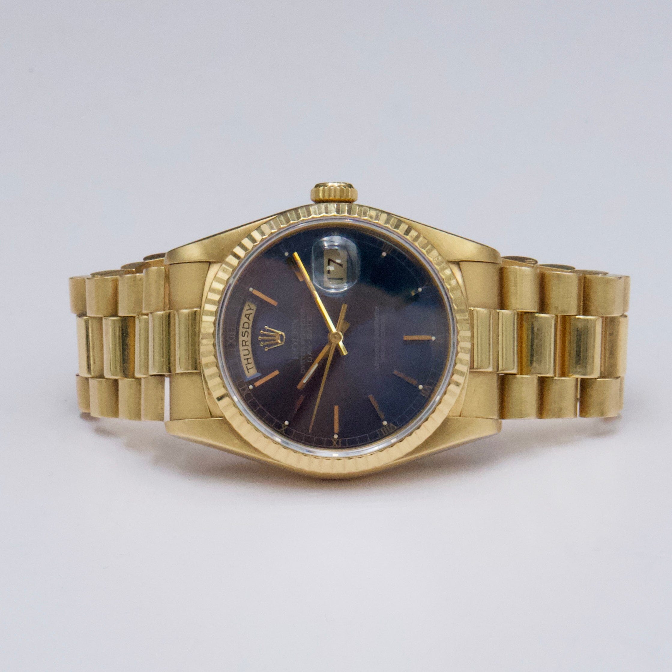 deuxieme classe 美品 GOLDEN ネイビー 37 Rolex Day Date 18238 Blue Dial 18K Yellow Gold Mens Watch – Phigora