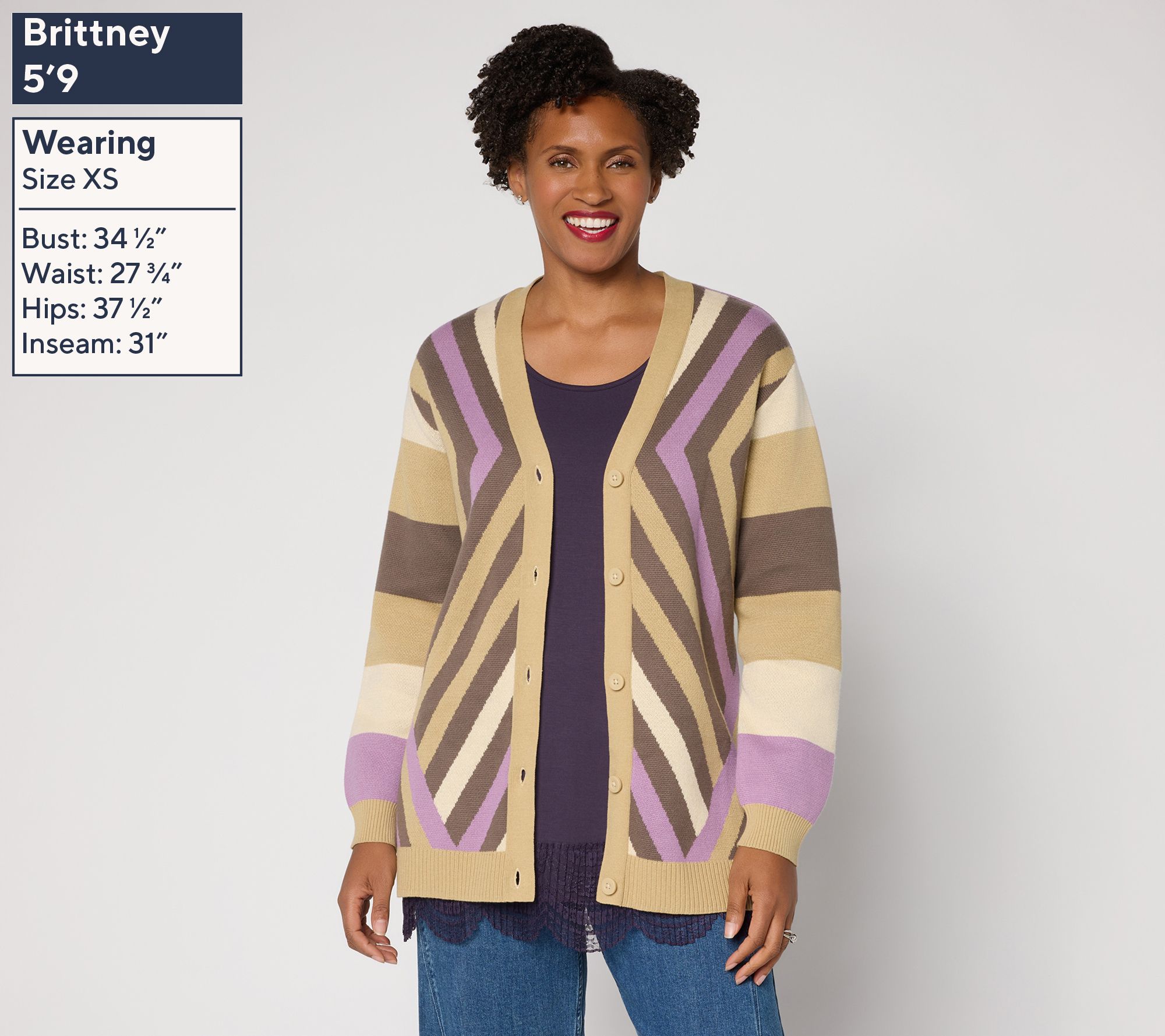 Traditional Weatherwear カーディガン XS ブラウン LOGO by Lori Goldstein Mixed Stripe Button Front Cotton Cardigan