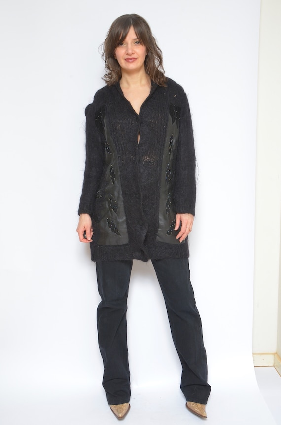 80's 90's vintage mohair taste カーディガン 黒 Vintage 80s Mohair Wool Cardigan: Oversized Black Sweater With