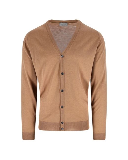トップス JOHN SMEDLEY PETWORTH CARDIGAN BROWN John Smedley Men's Brown 'Petworth' Cardigan