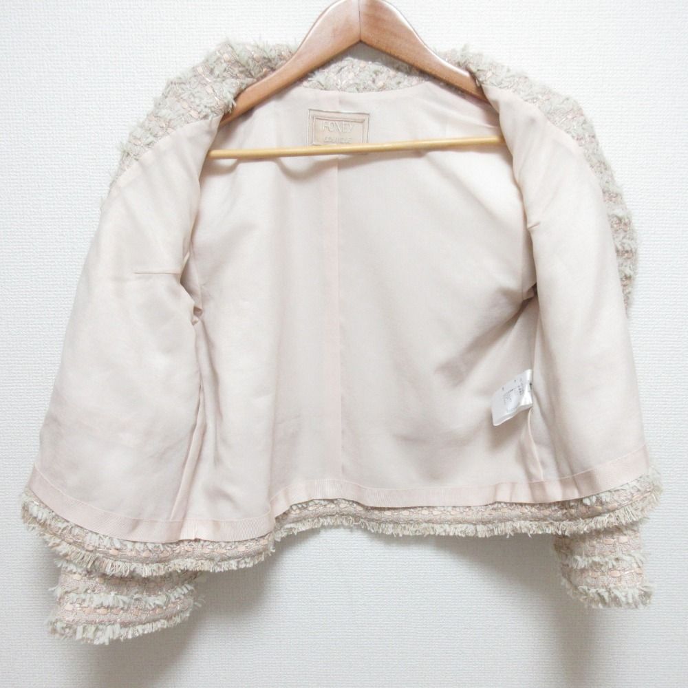 フォクシー FOXEY ツイード ノーカラー ジャケット ピンクベージュ 40 美品 FOXEY BOUTIQUE フォクシーブティック Jacket Peach Shake