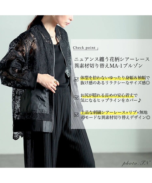 - レディース > ジャケット・アウター > 美品 kolor カラー レース切替 ジャケット 異素材デザイン ブルゾン 1 セール】花柄レース異素材切り替えMA-1ブルゾン【大きいサイズ対応