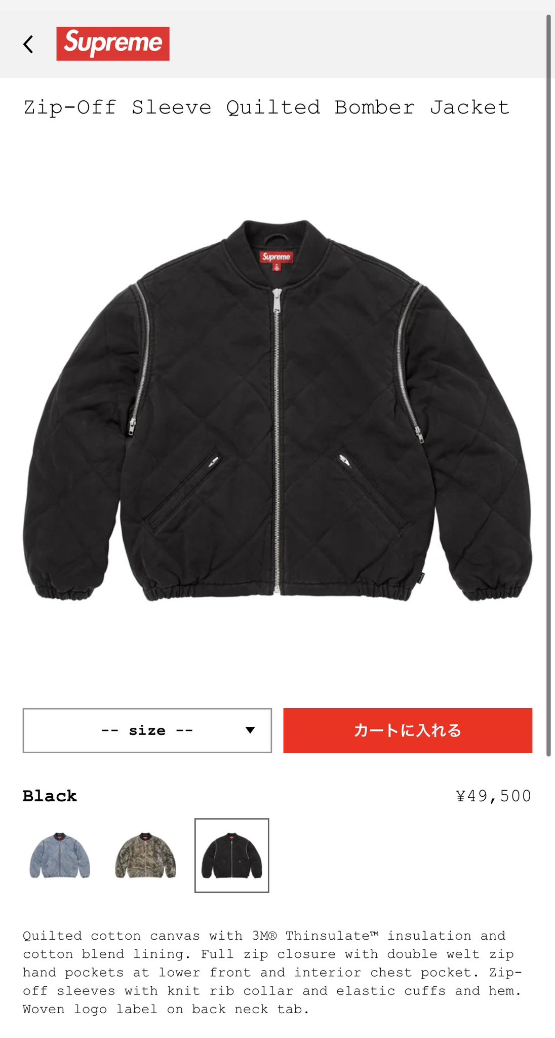 ジャケット・アウター Supreme Zip-Off Sleeve Bomber Jacket L Supreme Zip-Off Sleeve Bomber Jacket L Zip-Off Sleeve Quilted