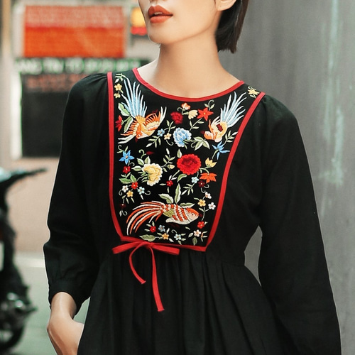 | メーカー名 | dc05570c5 | ブランド名 | yukiemon刺繍入り黒のひざ丈ワンピース Black |