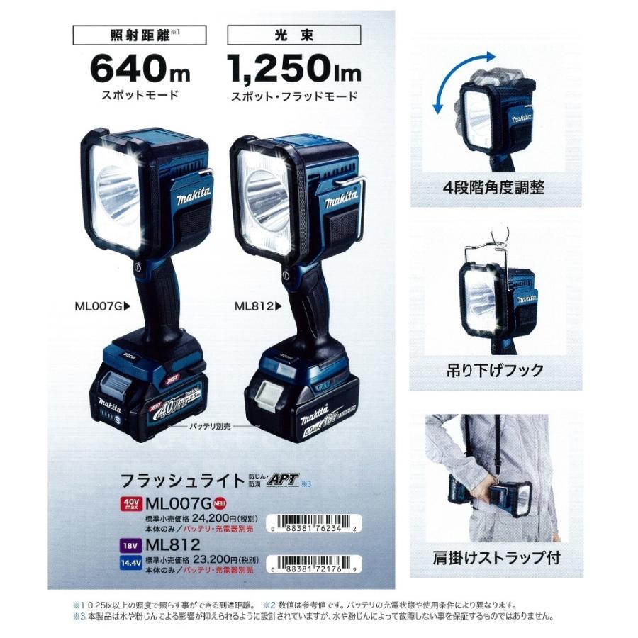 - アウトドア > ライト・ランタン > ★新品未使用★マキタ makita フラッシュライト ML812 LED マキタ(makita) 14.4V/18V 充電式フラッシュライト ML812 本体のみ