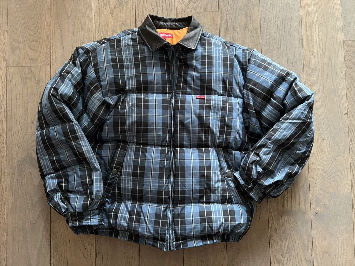 Supreme Leather Collar PuffyJacketチェック柄 美品 Supreme Leather Collar Puffy Jacket Supreme Leather Collar