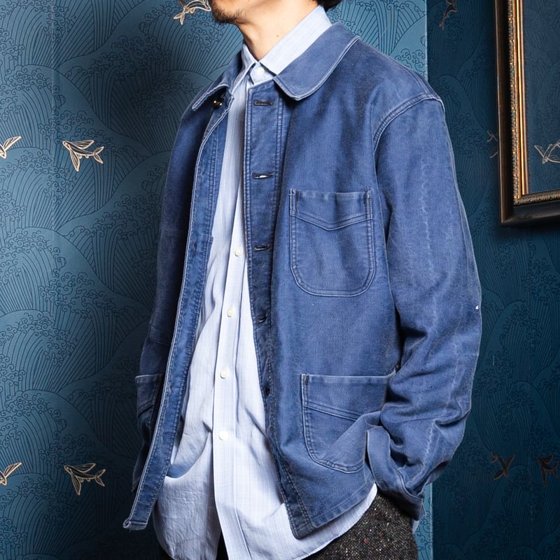 - メンズ > ジャケット・アウター > 50s Adolphe Lafont モールスキンジャケット Vポケット 40s-50s France Vintage Adolphe Lafont Blue Mole