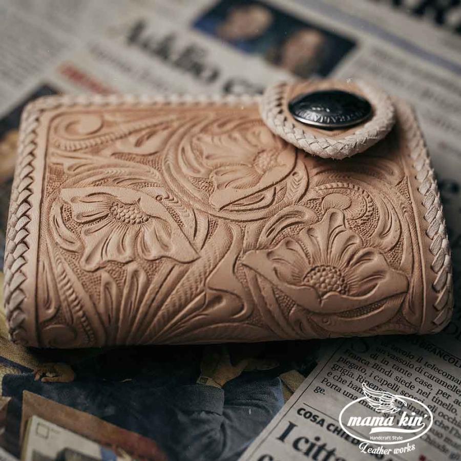 | 商品の特徴 | 二つ折り財布/カービングウォレット/バイカーズウォレット/ライダース。ミドルウォレット 手縫い ライダース/バイカーズウォレット レザー。ミドルウォレット 手縫い ライダース/バイカーズウォレット レザー。【カービングミドルウォレット 二つ折り財布】全面にシェリダン図柄を彫り込んだ二つ折りミドルサイズの財布になりますカードポケットは3枚と背面に3〜4枚分の収納スペースあり。札入れとフラップ型の小銭入れのベーシックな内装になりますズボンポケットにジャストで入るサイズ感です。ハンドルドロップやウォレットチェーンを追加料金にて付ける事も可能ですので必要な場合はご相談ください\"仕様\"ハーマンオーク社ツーリングレザー栃木ワイルドレザー__________________カービングに使用する革は全てハーマンオーク社のツーリングレザーを使用しています最高品質の米国原産ステアハイドの原皮を使用し、良質なタンニンで長時間かけて生産される最高級のヌメ革は、古くからカウボーイの愛用する鞍(くら)にも使用され、仕上がりが堅めな点からカービングに適し経年による色艶が良く高級な革材となっておりますその他、厳選した国産ヌメ革や輸入革を使用して作品を制作しております花と蔦をモチーフにしたシェリダンスタイルはアメリカ由来の昔からある伝統的な技法になります作品の全てのデザインは私のオリジナルで描きあげた物になり、常に修正・制作を繰り返して今現在のデザインとなっています独自の染色技法で色味を出し仕上げていますデザインから仕立てまで全て手作業の為、非常に手間がかかり量産は出来ませんお手に取っていただいた時にハンドメイドの良さを実感できる物作りを目指しています・天然牛革を素材として使用していますので自然な傷シワ等がある可能性がございます・色落ち、衣類等への色移りの可能性がございます。取り扱いにご注意ください・写真撮影には最善を尽くしておりますが、環境や色具合により実際の商品と若干異なる場合がございます・メンテナンス、修理。その他初期不良以外の返品は承れませんのでご容赦ください検索#ヌメ革#牛革#本革#革財布#バイカーズ#アメカジ#レザークラフト#ハンドメイド #シェリダンカービング#ロングウォレット#ワンオフ#サドルレザー#レザーカービング#レザーウォレット#レザーキーケース#ラウンドファスナー#カービングウォレット#革小物#pierrotCR。シンプルデザインの大容量ウォレット!!。貴重レア☆切腹ピストルズ☆がま口ミニショルダーバック(豊田組)。IQOS ILUMA i セレッティ イルマiセレッティモデル 数量限定 新品。m+ エムピウ ミッレフォッリエ | ||