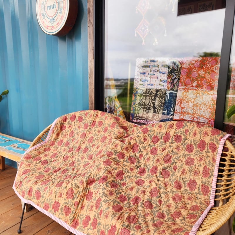 - ファブリック・カバー類 > ソファカバー > 未使用※大判 インド ブロックプリント 中綿入りキルト ソフトオレンジ カバー ブロックプリントふかふかキルト | Ethnic Life mui