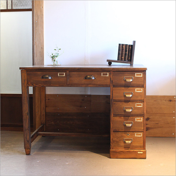 - 机・テーブル > 事務机・学習机 > vintage 引出し付テーブル(デスク) ヴィンテージ古家具昭和レトロ 昭和初期 片袖 ワークデスク デスク 机 無垢材 天然木 アンティーク