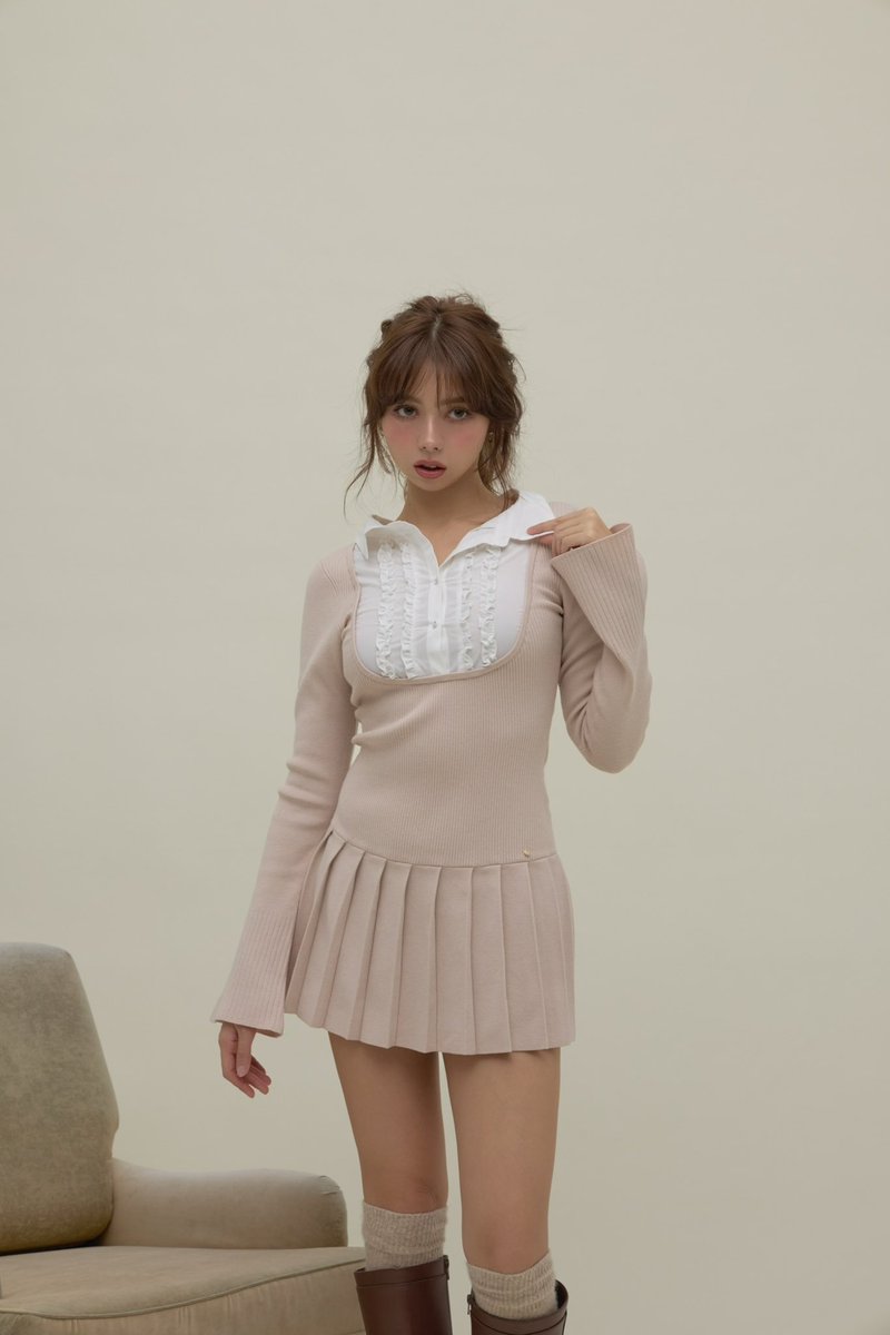 ワンピース Lotta frill mini dress Pink beige Lotta frill mini dress color pink beige/black ¥17600-tax in フリル