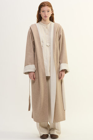 美品【大きいサイズ3】プレインピープル アンゴラダブルフェイスコート ベージュ PLAIN PEOPLE(プレインピープル)|ウールカシミヤダブルクロスジャージ