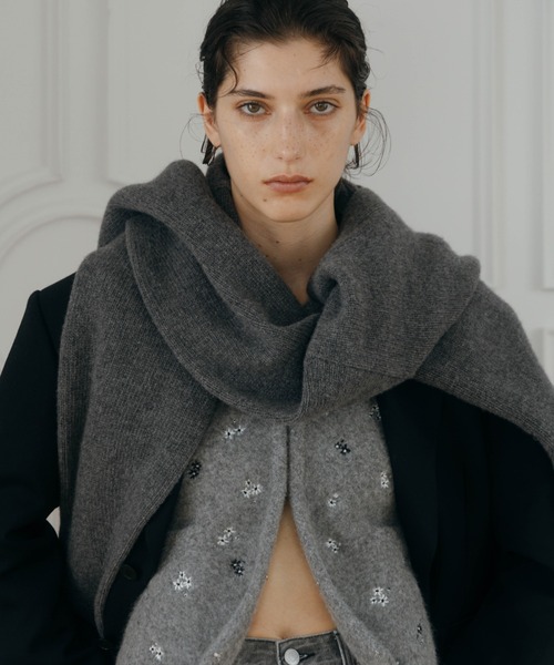 クレドナ CREDONA フラワー エンブロイダリー ニット ジャケット グレー FLOWER EMBROIDERY KNIT JACKET/フラワーエンブロイダリーニット