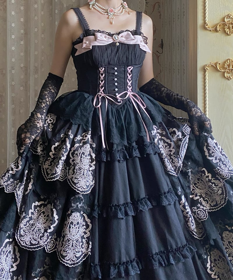 - レディース > ワンピース > 【さくらんぼ】 ラウンド襟付きコルセット型ワンピース ジャンスカ 黒 Point Garden」ジャンパースカート 【9/27まで】送料無料! | GIRLISM