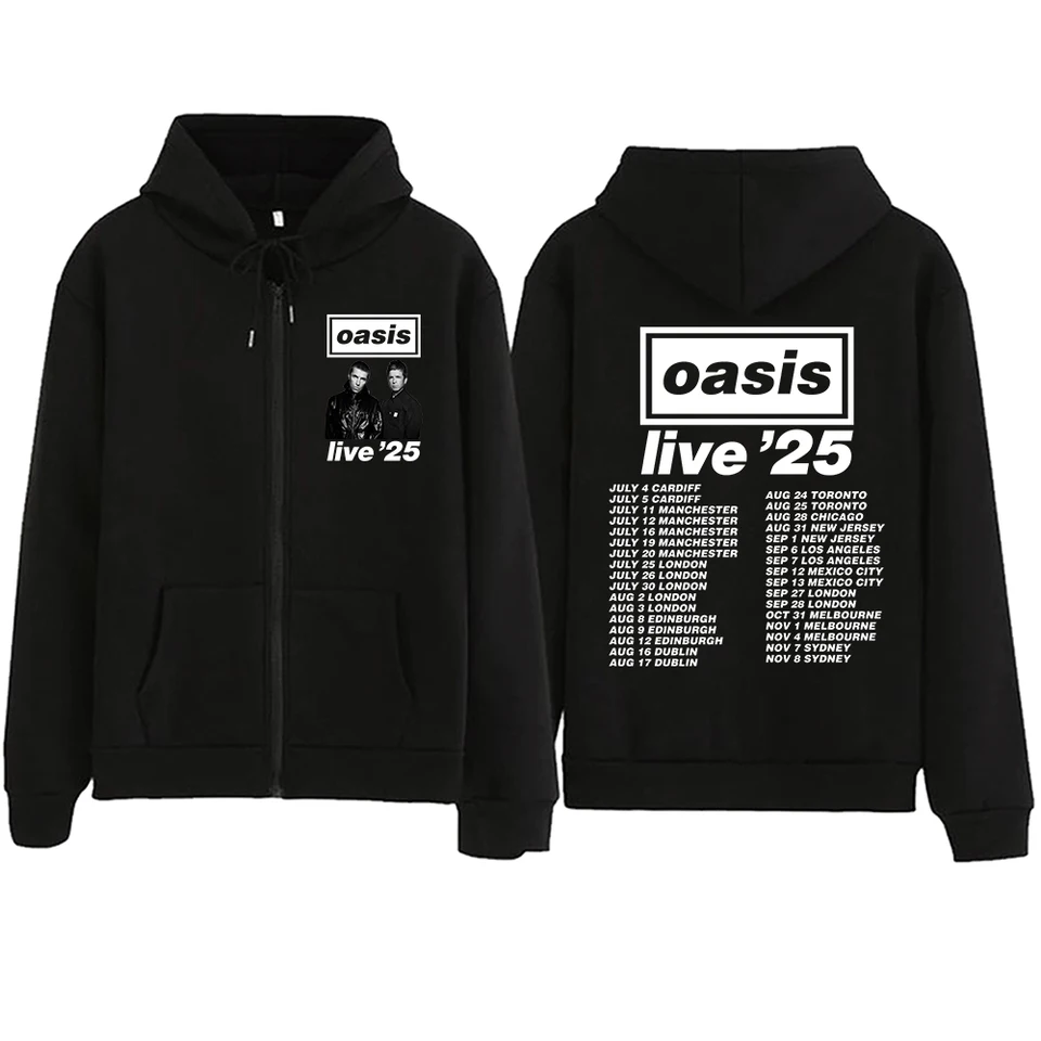 oasis ブラックジャンパー live '25 Oasis Live 25 Tour 2025 Zip Up Hoodie for Fan Hoodies Sweatshirt