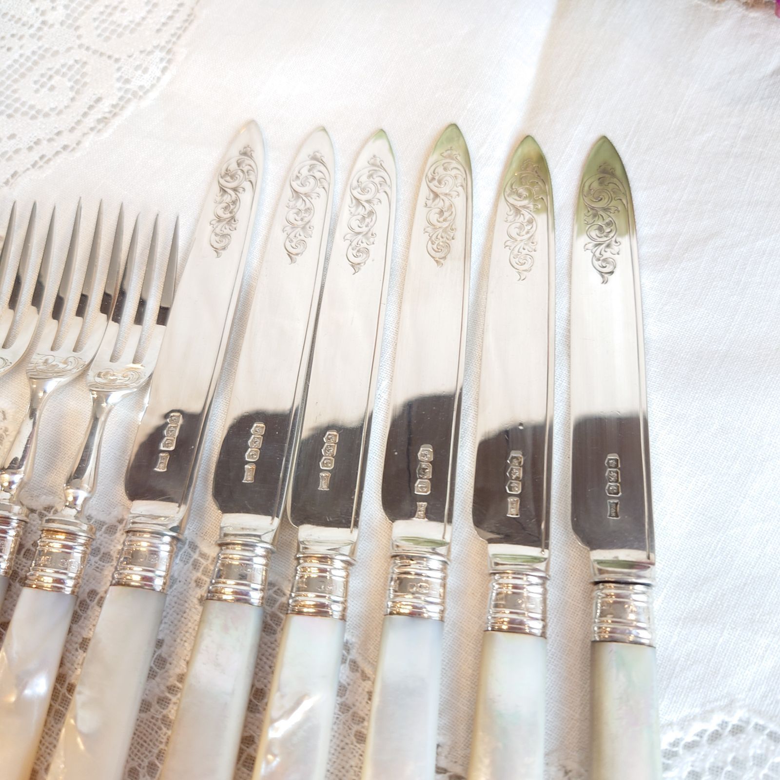 - 美術品・アンティーク・コレクション > 工芸品 > 【白蝶貝】カトラリーセット ナイフ/フォーク12本 マザーオブパール ケース 白蝶貝】カトラリーセット ナイフ/フォーク12本 マザーオブパール