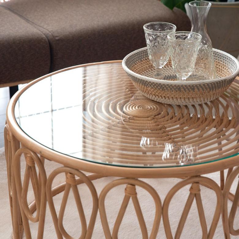 - 机・テーブル > センターテーブル・ローテーブル > ナチュラル天然素材 ガラス天板×籐ラタンフレーム センターテーブル 籐家具 ELEMENTS センターテーブル ローテーブル ラタン 籐 ガラス天板