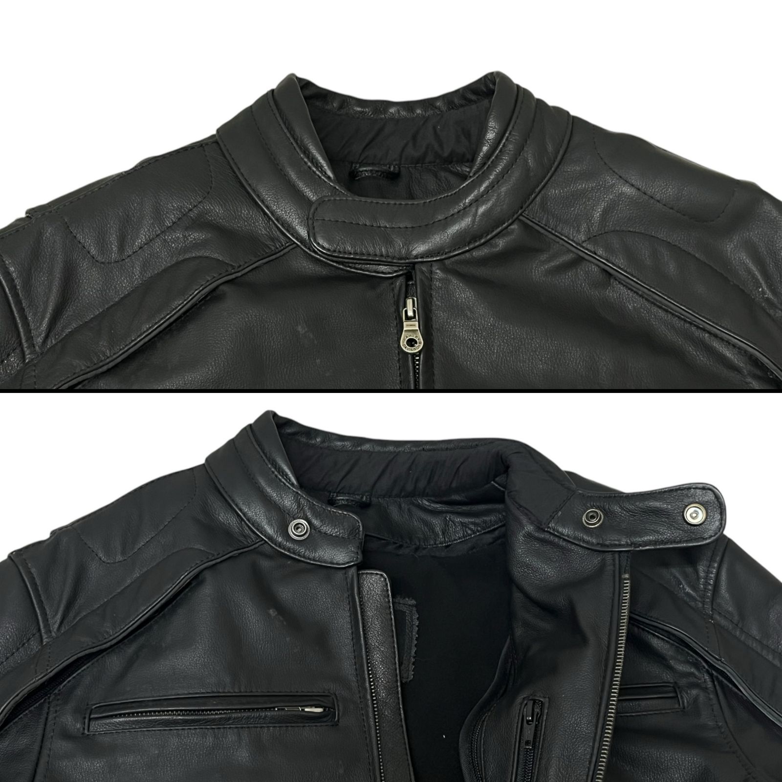 | 商品の特徴 | Harley Davidson ブラック シングルライダースジャケット M Vtg USA。HARLEY DAVIDSON TORQUE MENS BLACK LEATHER JACKET 98114-06VM Medium。。ブラックのシングルライダースジャケット、ジッパーポケット付き、Mサイズ。カラー···ブラック系レザー素材···牛革。レガロ様ご成約済み!リプレイREPLAY ラムレザーシングルライダースジャケット。- ブランド: Harley-Davidson- サイズ: M- カラー: ブラック- デザイン: シングルライダース- 特徴: ジッパーポケットご覧いただきありがとうございます。【レザー】Liugoo Leathers リューグーレザーズ【ジャケット】 | ||