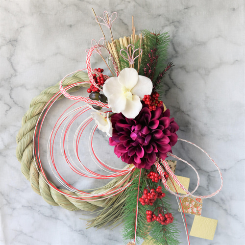 | 商品の特徴 | 新作【送料無料】まだ間に合うLサイズいわみのしめ縄飾り 紫色系の。お正月2025☆和モダン バーガンディ・大輪菊と胡蝶蘭のしめ縄お正月。お正月[ミニ水引飾り]ほほえみ/アーティフィシャルフラワー しめ縄。楽天市場】【水引細工】水引仏花「法料 紫」〔MBF-3〕【日本製】【お盆。今年もご覧いただきありがとうございます(*^^*)よろしくお願いいたします+゜*しめ縄普通郵便送料−660円しめ縄、水引ミニお飾り、おまとめ割−300円メルカリ便120サイズ 1200円【合計20120円+メルカリ便送料1200−960円=20360 】★しめ縄2個 6360円★水引ミニお飾り4個 8000円★仏花一対 3980円★残りのお花 1780円【しめ縄 ふたつ】 合計6360円2980円+オーダー料200円=3180円×2①単色の赤で8の字 →濃赤クロスしてる所にやや斜め右上がり 茎は切る②青の丸(Vブルー)花のみ3~4つで他小物でデコ茎は切る 赤、黄、青、ゴールドのカラー 赤い実 すごくたくさんのゴールドの小物で装飾 しめ縄の小物で松ぼっくりと綿花はNG 水引 赤と金【水引ミニお飾り 4つ】 合計8000円去年と同じ1800+オーダー料200円=2000円×4①赤&ゴールドの水引 イエローカラー②青&ゴールドの水引 ブルーカラー③薄ピンク&白 赤のカラー 白小物④赤&白 青のカラー 白小物水引2重→前回くらいの束(量)20本を2色使い(40本を半分にカット→80本)で捻り、前回と同じに裏側ワイヤーで装着用の輪15cm【仏花】 一対で3980円(オーダー料、作業料、材料費込み)ボリュームあります①全長40㎝くらい 黄色 ブルー ラベンダーのお花リクエスト (菊とユリはNG)あとはお任せ【余のお花】 合計 1780円引き取っていただきありがとうございますm(_ _)mゴールドカラー 6本 1110円ブルーカラー 2本 100円イエローカラー 3本 132円レッドカラー 3本 150円ゴールドカラー(茎緑) 1本 288円発送は指定無しのメルカリ便 | ||
