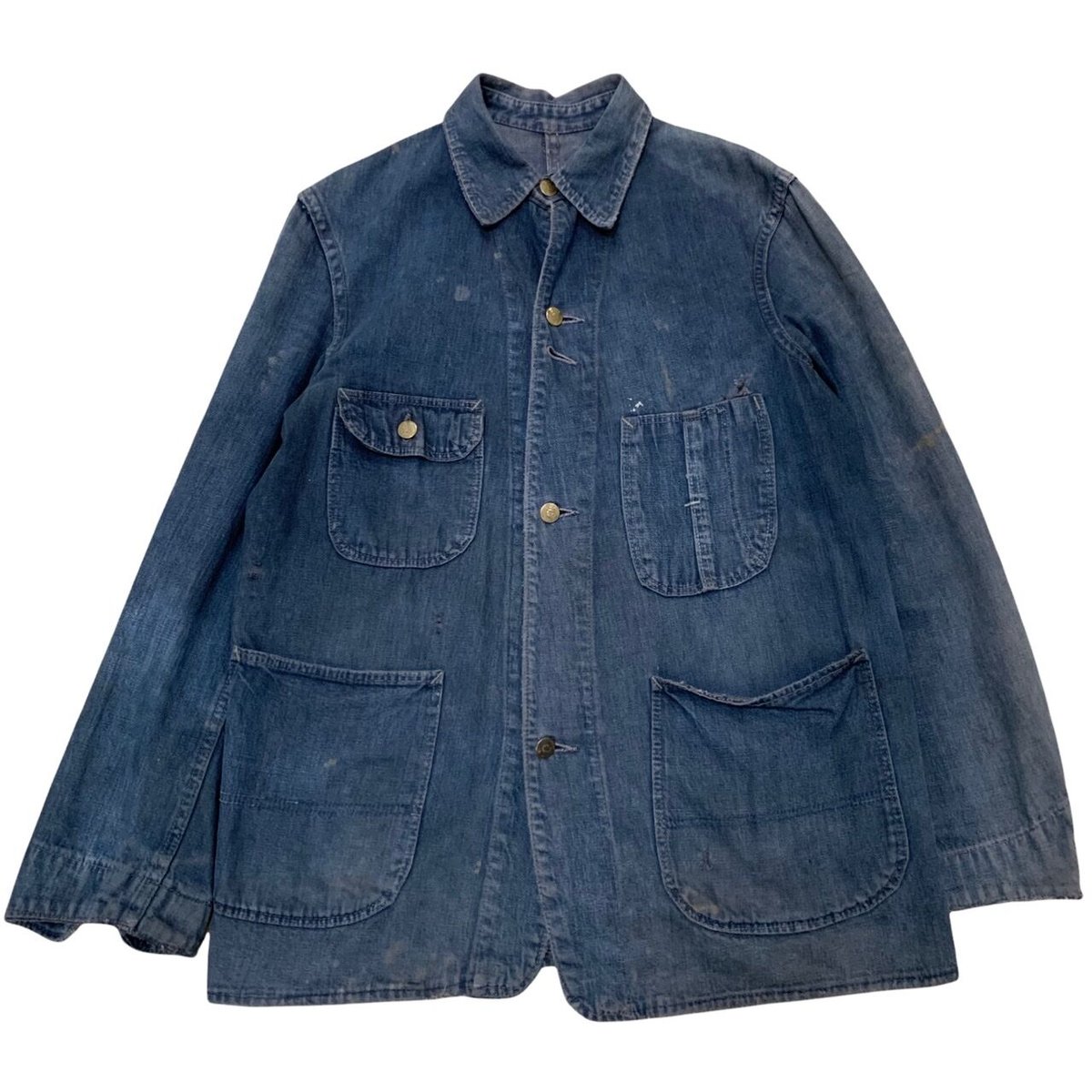 | 商品の特徴 | fit=scale-down,w=1200。50-60's VINTAGE FULL CUP DENIM COVERALL | OLD INN.。50-60's VINTAGE FULL CUP DENIM COVERALL | OLD INN.。サイズ表記:なし 着丈:70.5cm 身幅:54cm 肩幅:46cm 袖丈:61.5cm色: ネイビー状態: C備考: 1950年代頃 後染めデニムカバーオール。FULL CUP製。ボタンに\"FULL CUP SANFORIZED 80Z.\"刻印。ベースの色落ちに染料が入りムラとなったのか不明ですが、染めムラがあり、それが良い雰囲気となっております。色ムラや深みのある色合いから染料も当時に近い年代であると思われます。第三ボタンが欠損。背面左にリペア跡。ヴィンテージとしての雰囲気が抜群で近年物では出せない雰囲気、ダメージ感がまさに一点ものです。グッドサイズです。#古着屋HTVINTAGESこちらで他商品見れます。まとめ購入歓迎!【状態】S:ほぼ新品。タグ付き。A:若干の使用感はあるが、状態の良いUSED B:使用感はあるが、目立つダメージや大きな汚れはない C:部分的に目立つ傷や汚れあり D:過度の使用感、目立つ傷や汚れあり。使用は可能 ※状態は個人の主観ですのでご了承下さい。※傷、汚れは見落としがあり記載していない場合があります。ご覧いただきありがとうございます。全て平置きで採寸しております。多少の誤差はご了承下さい。全てUSED品の為、傷や汚れなどご理解の上ご購入を検討していただけたらと思います。※商品のほつれや色落ち、使用感や劣化などの古着特有の問題や、傷、汚れ、染みなどによる返品交換は一切承っておりません。ご理解宜しくお願い致します。。GO OLD RUSH | 1950's Denim coverall。MAATEE&SONS 折って折ってCOVERALL サイズ1。ジャケット・アウター Supreme 25FW Hooded Utility Jacket S。美品sacai × Carhartt WIP サカイ × カーハート 23aw。【美品】Lee カバーオール リジット 未洗い デニムジャケット。超スペシャル アメリカ製 カーハート チョアコート カバーオール 44 ブラック。L.L Bean JAPAN EDITIONビーンズ・フィールドコートLサイズ。KAPITAL カバーオール M グレー/ブラック。or Slow デニムカバーオール サイズ3。50s-60s フランス軍 CottonTwill jkt。comoli 21AW デニムワークジャケット サイズ4。Ron Herman デニムカバーオール。Needles Denimpapillon カバーオール ニードルス。激レア BIM、Farmhouse着用 BoTT 2020AW ワークジャケット。カーターズ Carter's Chore Jacket 60年代 カバーオール。【JOE MaCOY】カバーオール。SASSAFRAS(ササフラス)  WHEEL BARROW JACKET。KKKMYYYさま専用 新品Inscrireアンスクリア ダックコート。needles カバーオール サイズS。BROWN'S BEACH JACKET ビーチクロス ジャケット 38。90s POLO by RALPH LAUREN ファイヤーマンジャケット | ||