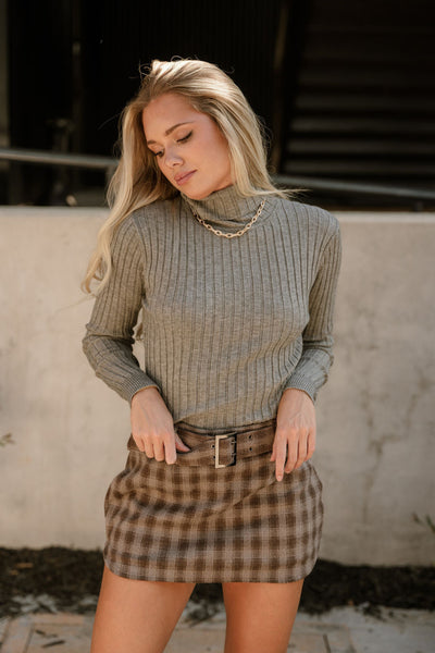トップス Random Ribbed Plaid Knitted Top Kora Heather Grey Ribbed Knit Top - Lizard Thicket
