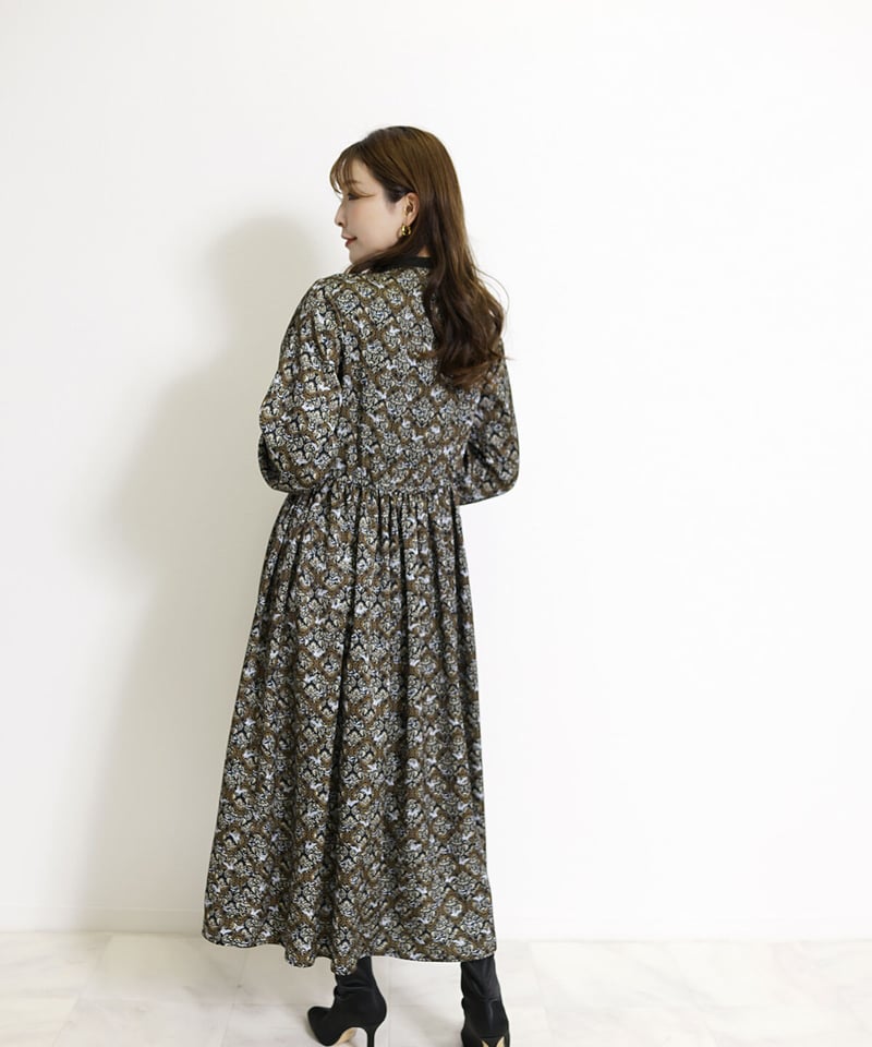 - メンズ > ジャケット・アウター > 90sヴィンテージガウン 総柄 ヨーロピアン バロック柄 アンティーク調 ロング アラベスク バロック柄 ピンタックワンピース レトロ 欧風 CH_hdmn
